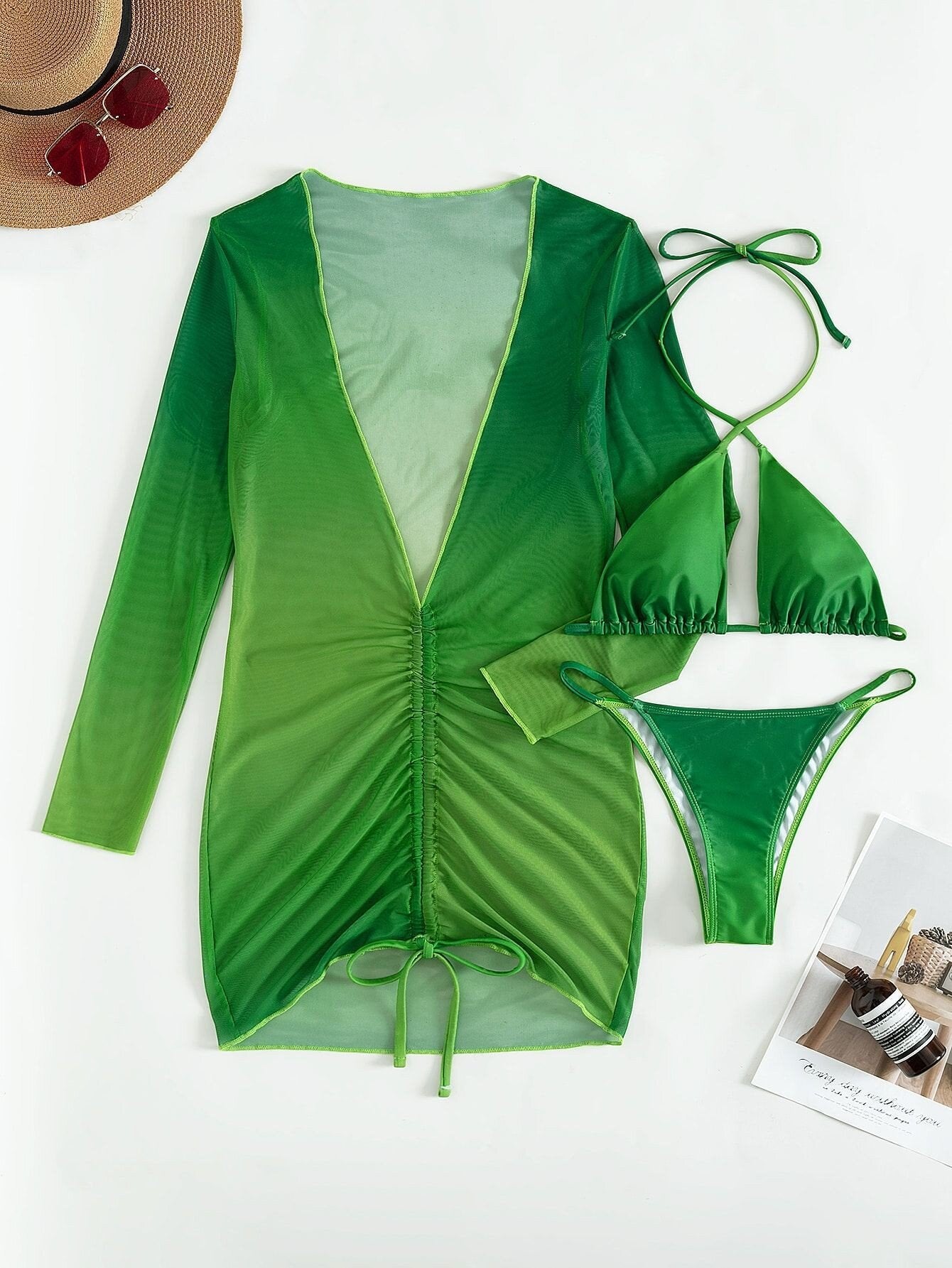 - Features: Tie, sheer