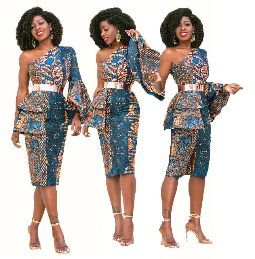 Elegant One-Shoulder Dress Fashionable Evening Dress (+)