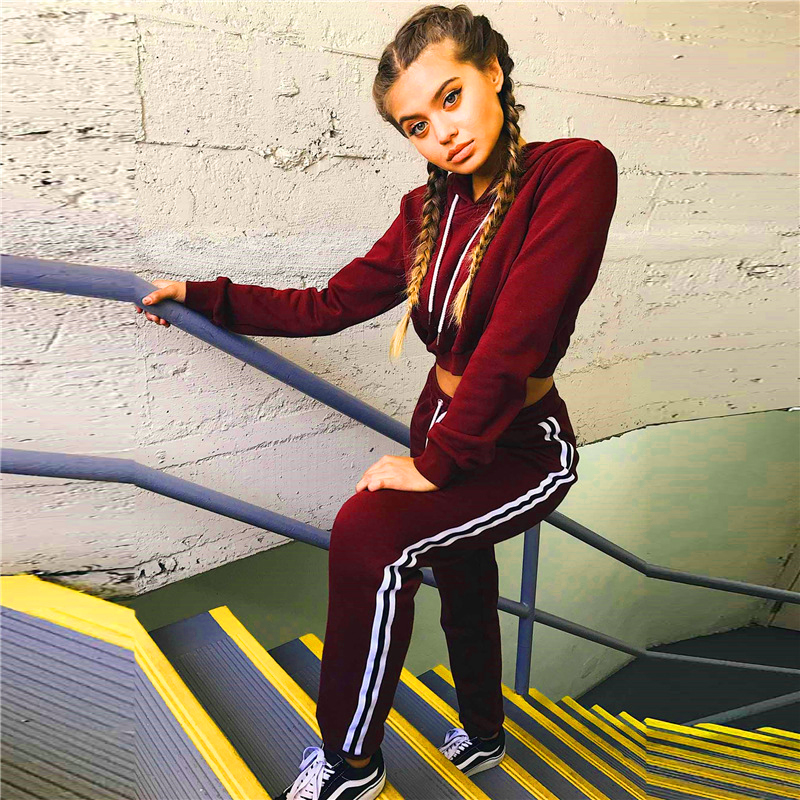 Europe and United States Women's New Hooded Sweater Sports Suit +