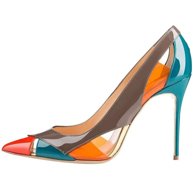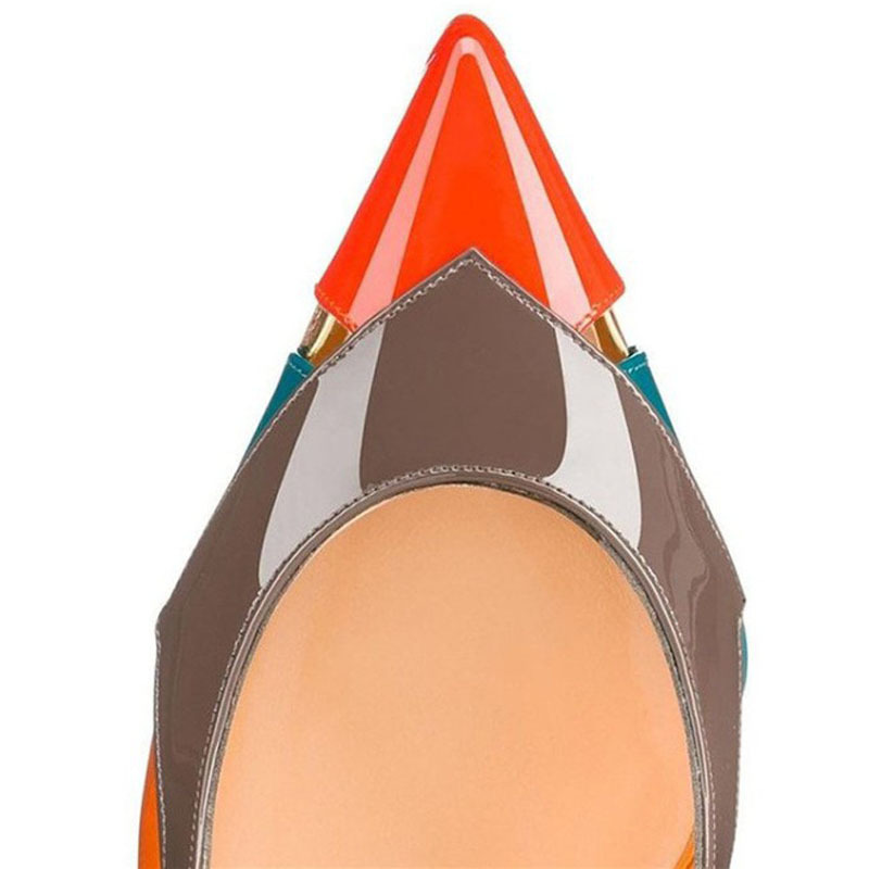 Multi-color Patchwork Collision Shallow Mouth Pumps High With Fine Women's Shoes +