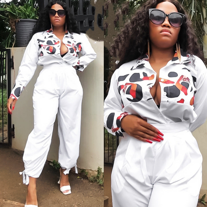 African Plus Size Women's Printed Casual Jumpsuit - Fashion Jumpsuit for Ladies +