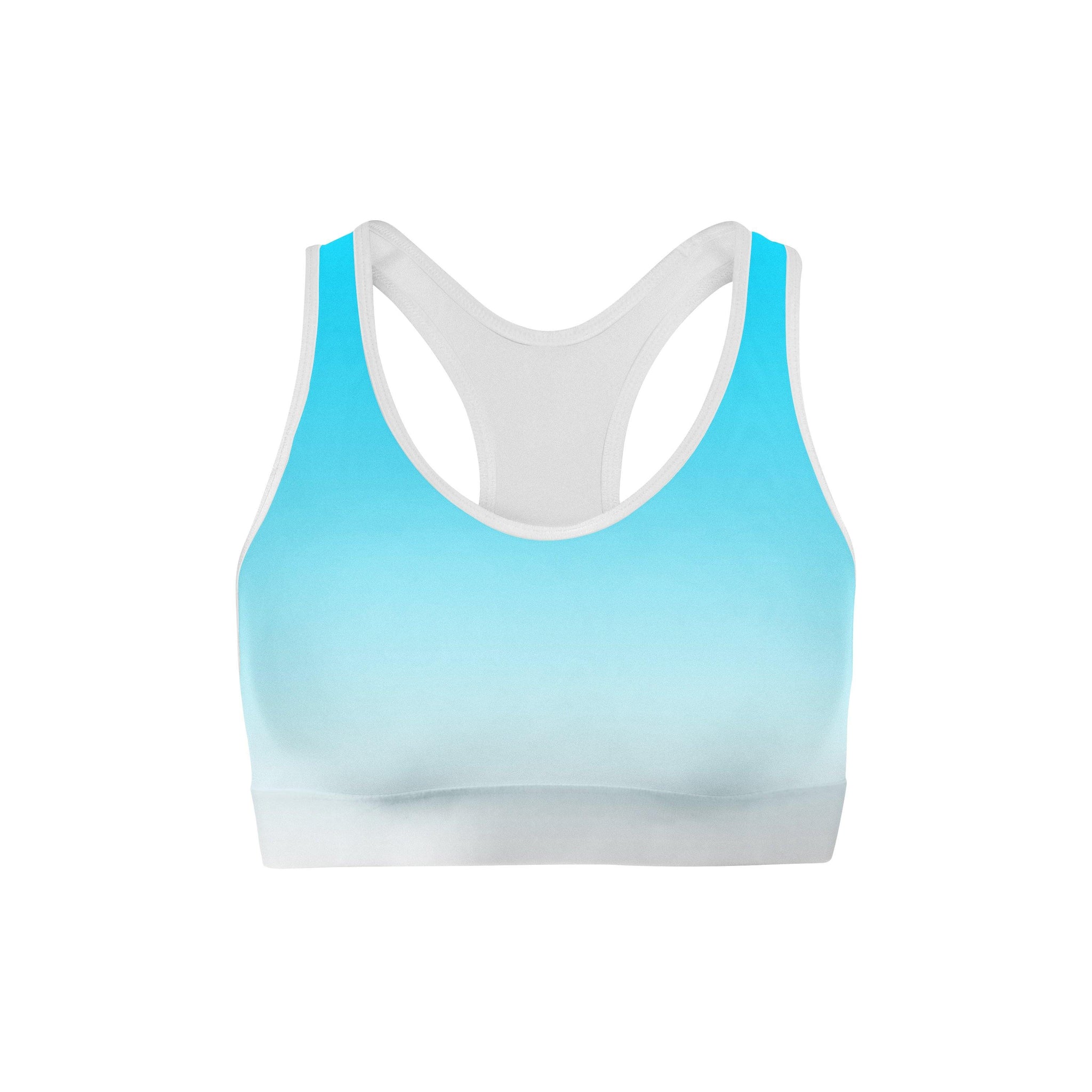 The Blue White Ombre Sports Bra helps you stay fit and focused. Lightweight Soft Lycra  fabric keeps you cool, while a compression fit and four-way stretch build grant unrestricted movement. Moisture-wicking properties eliminate sweat, and the athletic racer back  design with breath-ability.