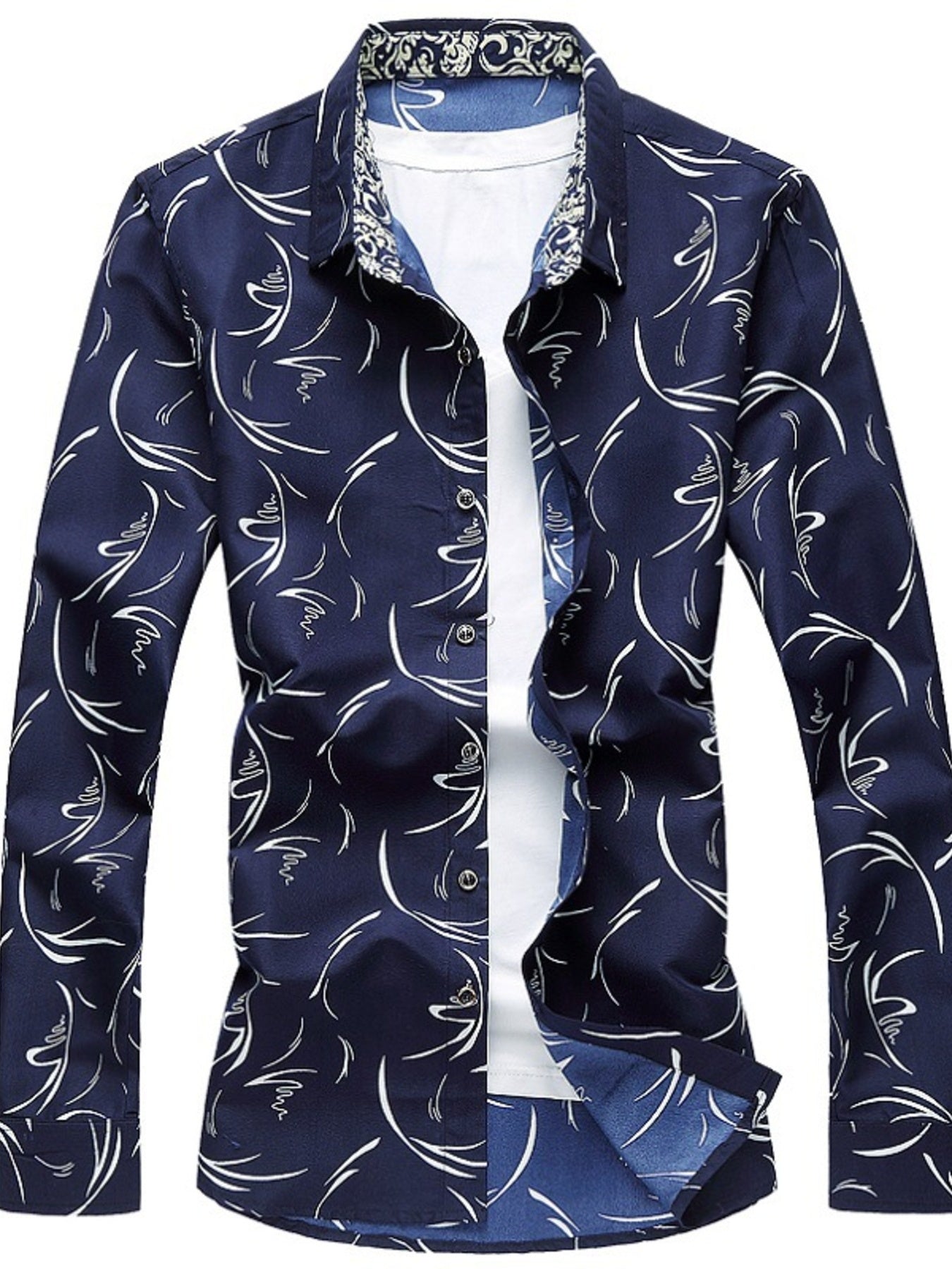 Men's Printed Long Sleeve Shirt With Plus Size +