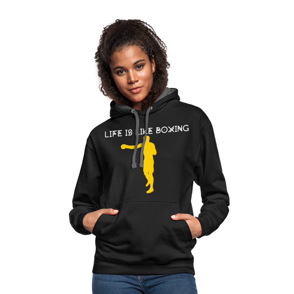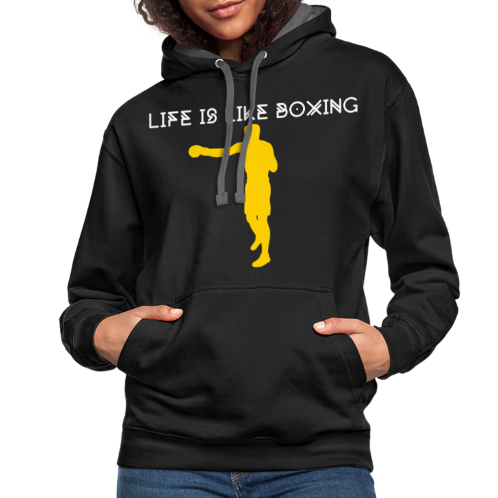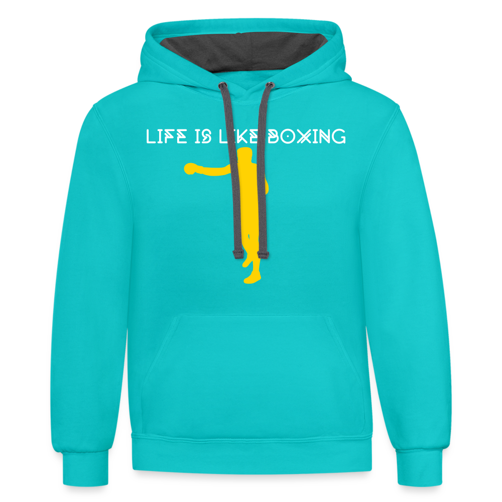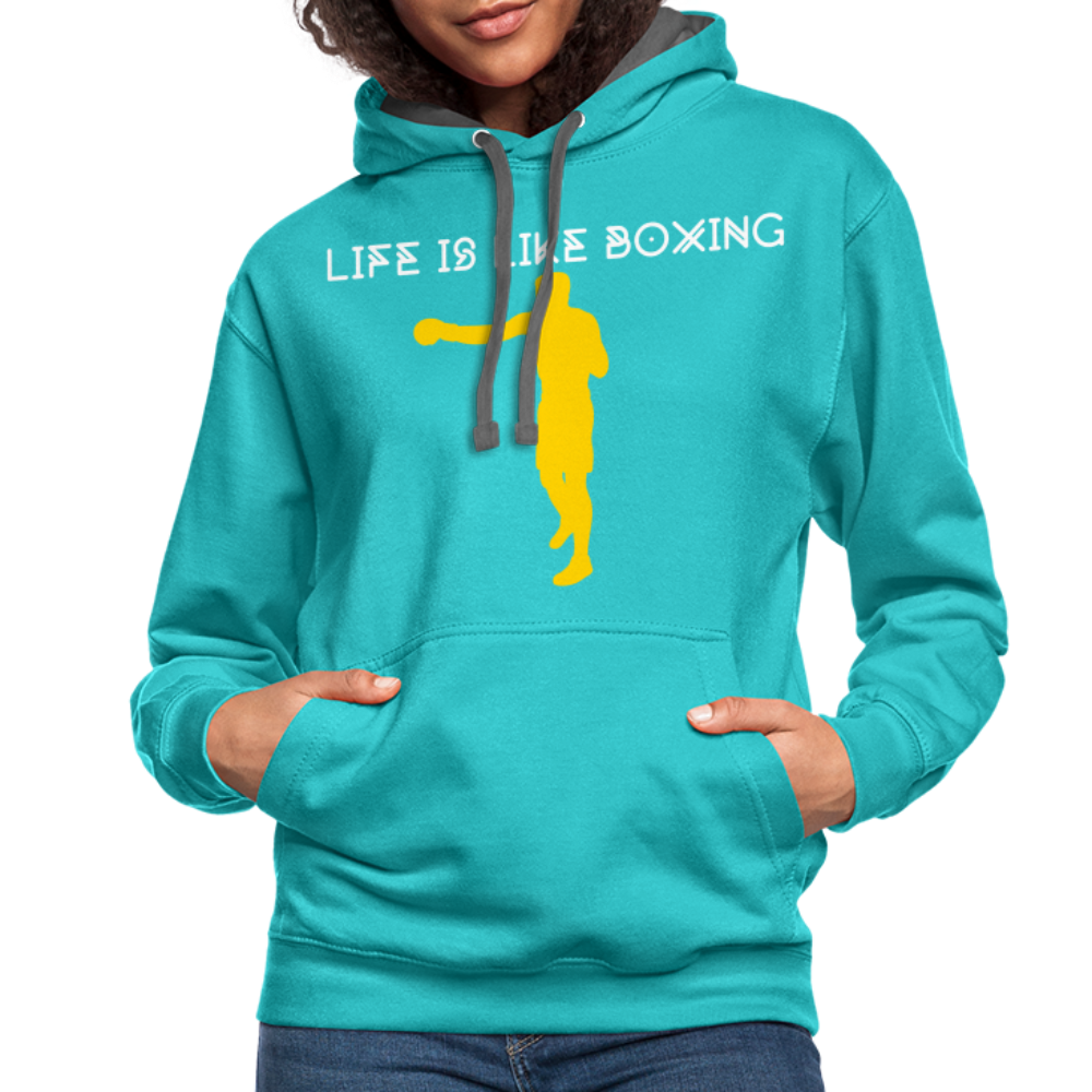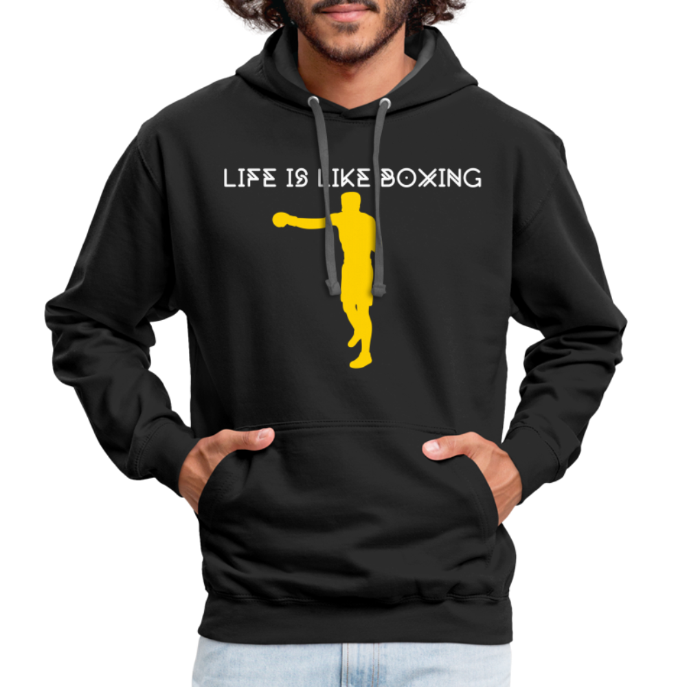 - Two-ply hood with aluminum grommets; front media pocket for tech gadgets