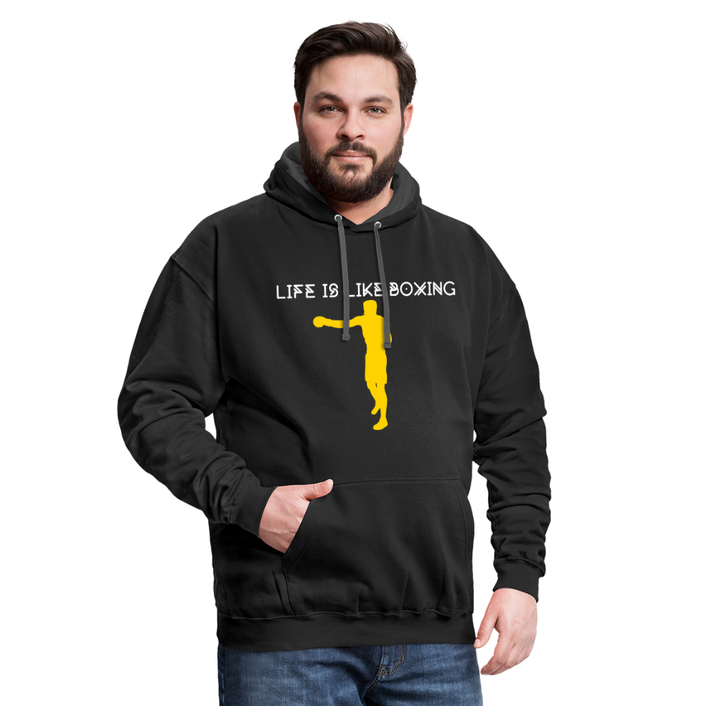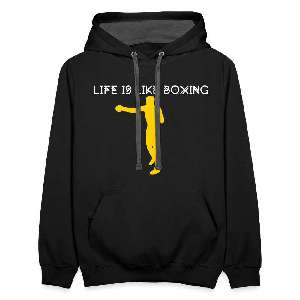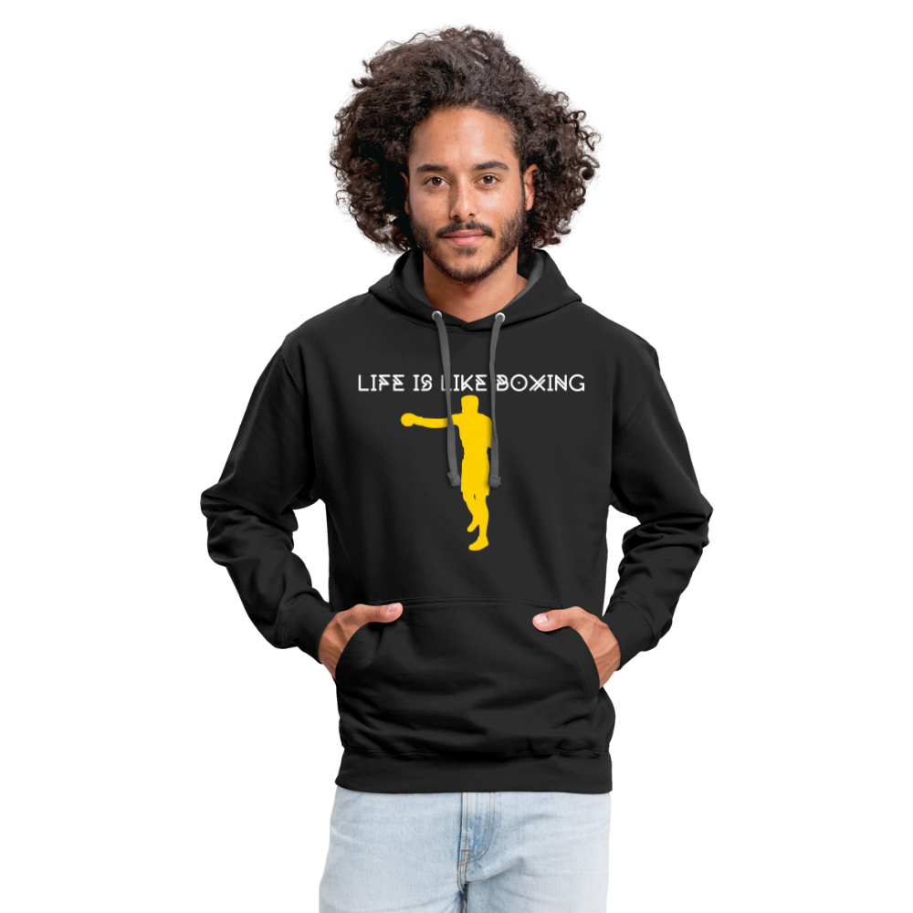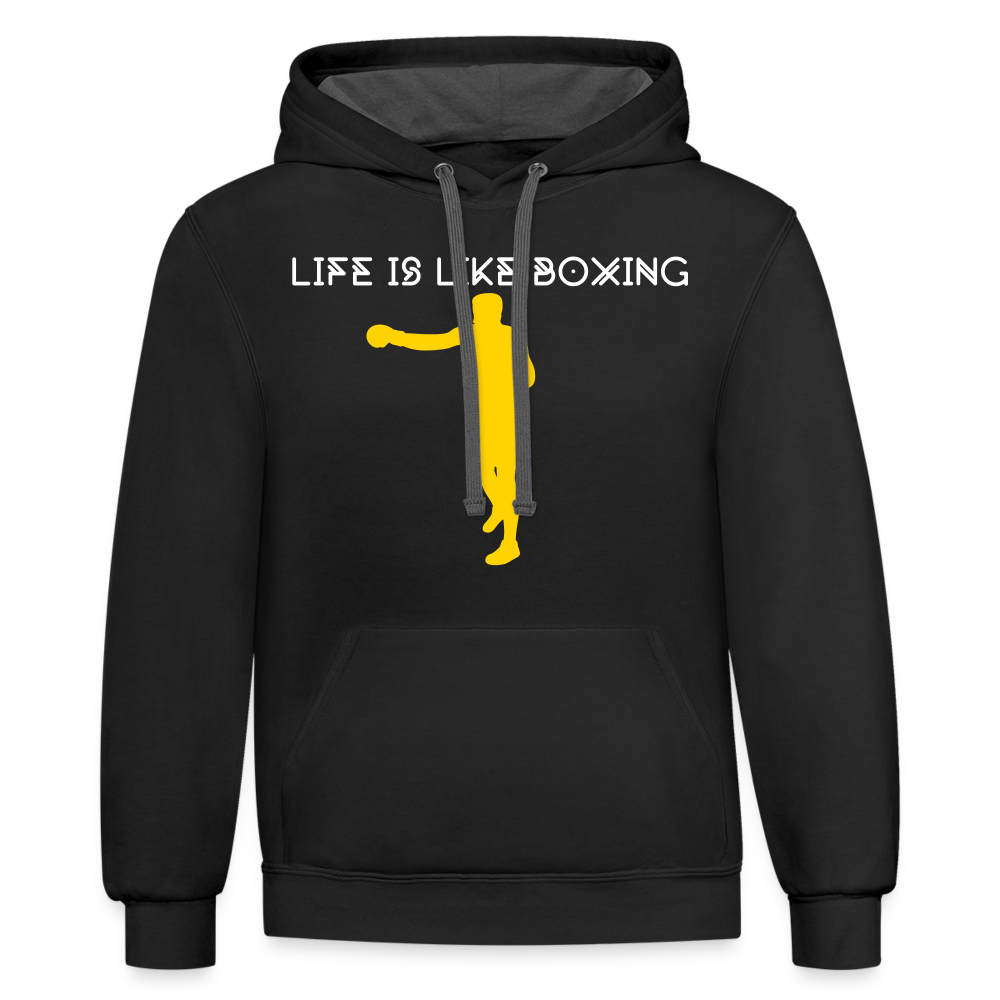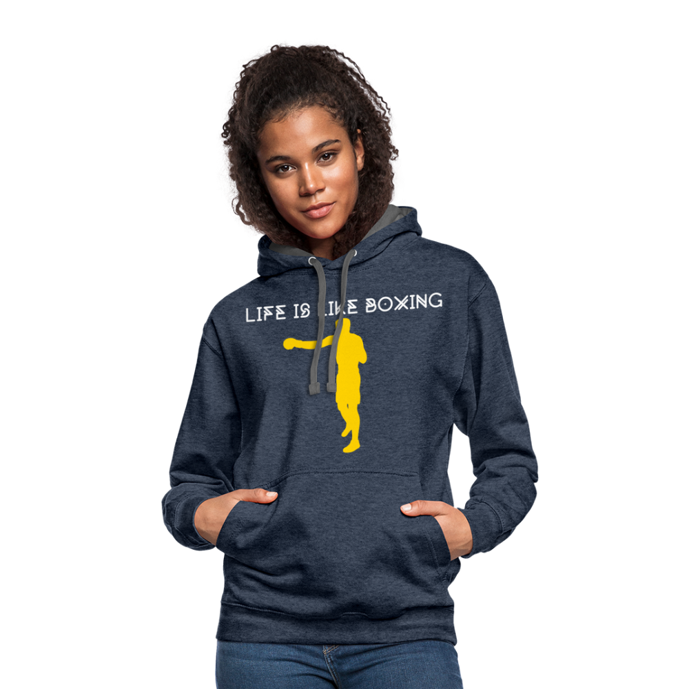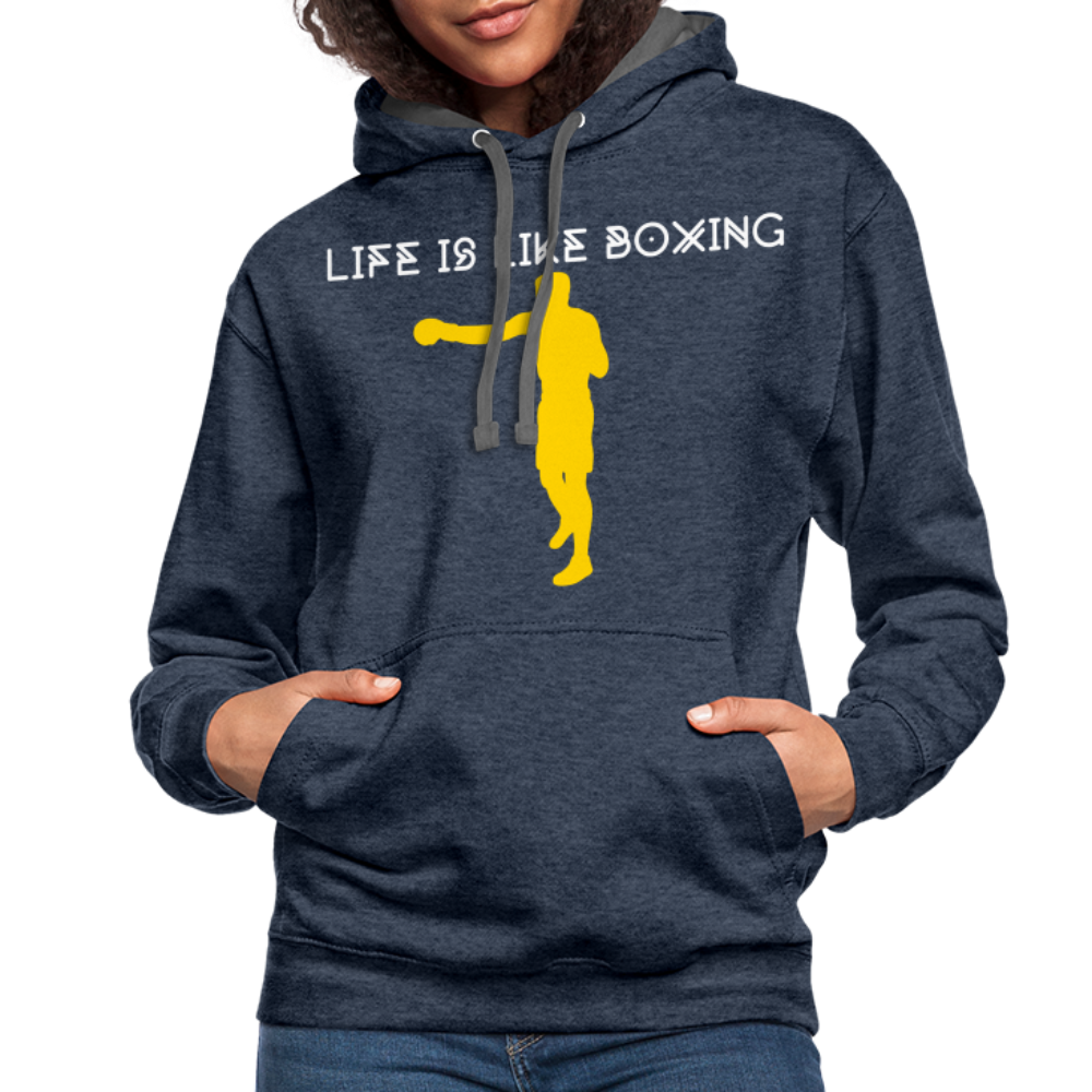 - Two-ply hood with aluminum grommets; front media pocket for tech gadgets