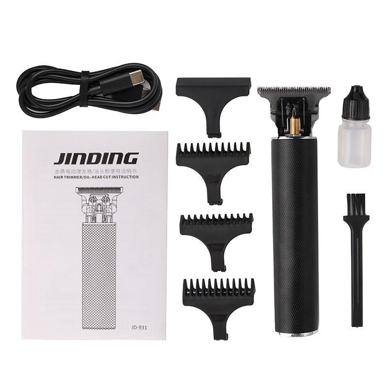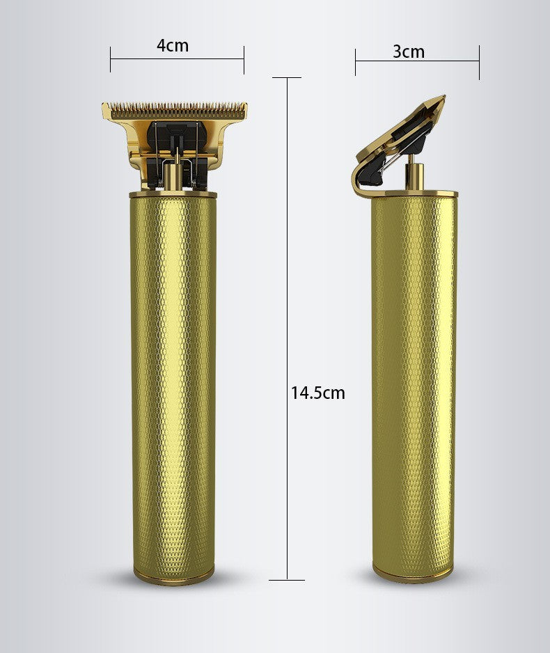 All metal body. High carbon steel cutter head, equipped with 3.7V motor, lithium battery, can be used for haircut, sideburns, carving and whitening.