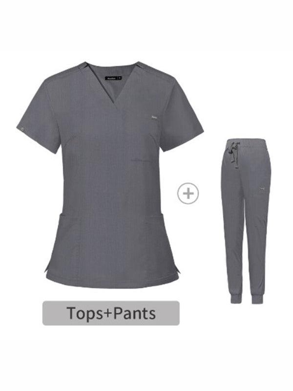 Scrubs V-neck Short-sleeved Hospital Nurse Suit Doctor Uniform Female Operating Room Washing Clothes +