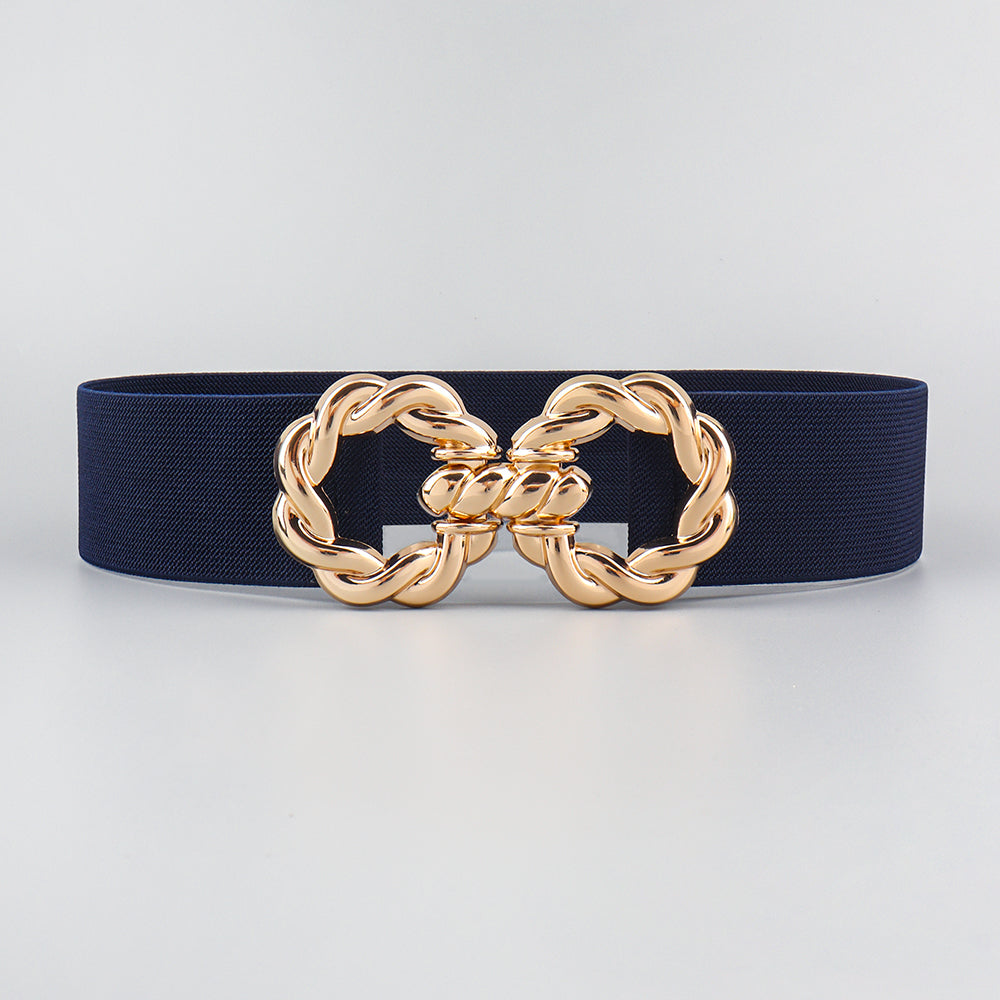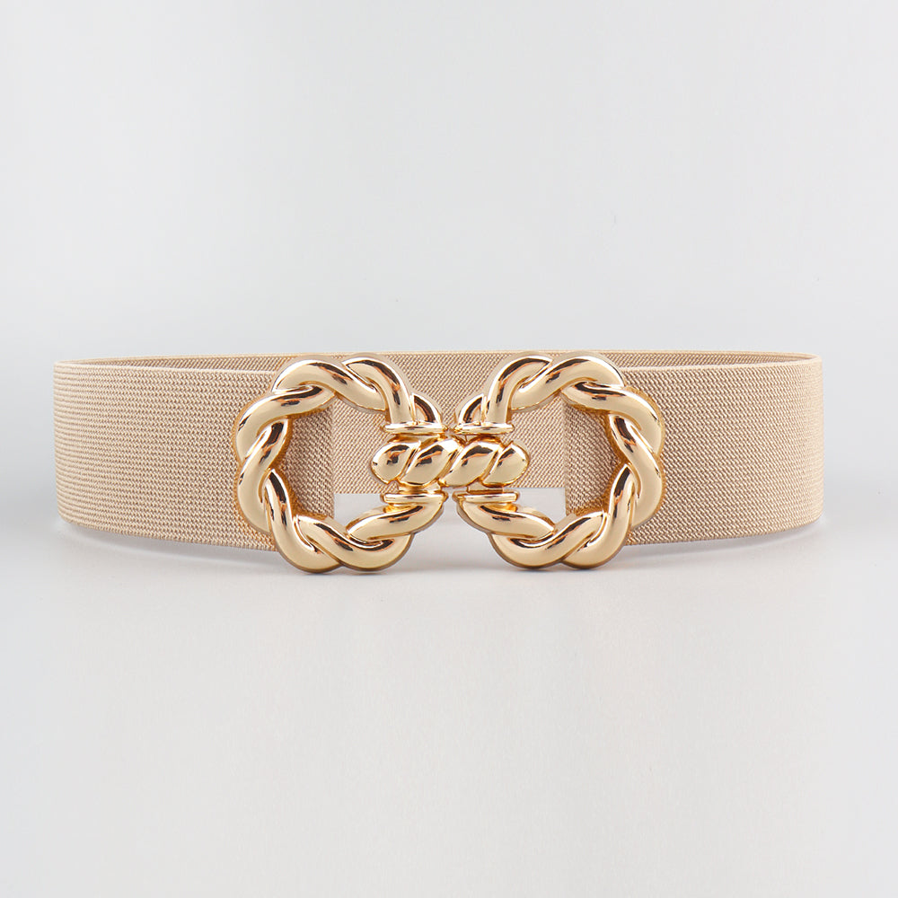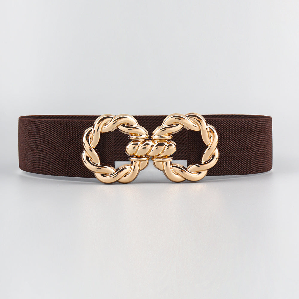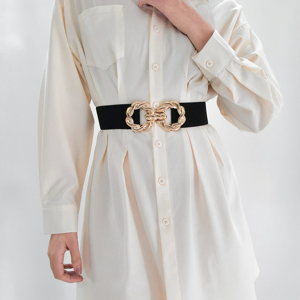 Women's Waist Decoration Metal Button-down Belt Dress Waistband Retraction Elastic Waist Seal Strap +